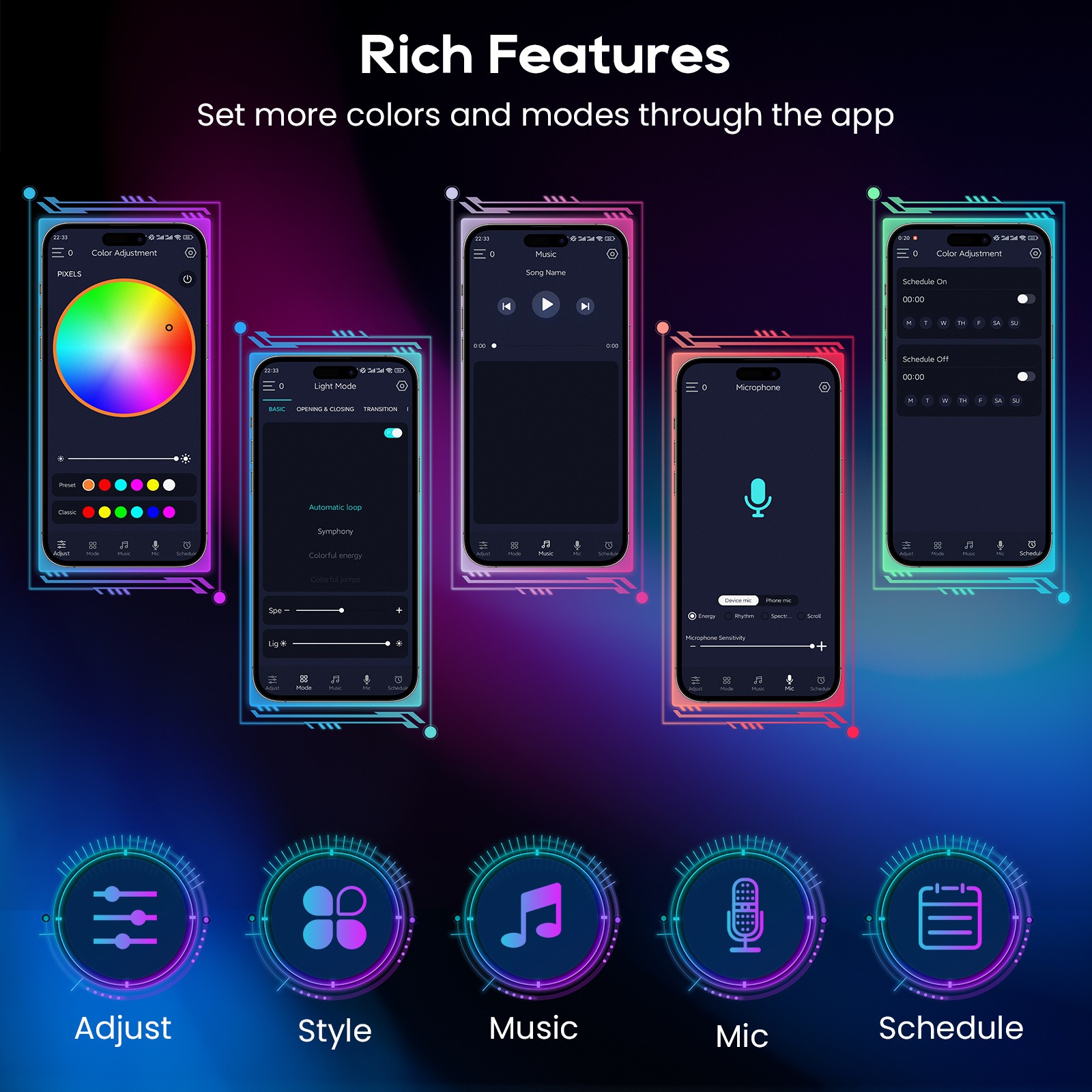 Rich Features Set more colors and modes through the app